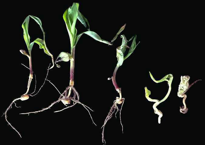 Injury: Corn leafing-out underground, improper leaf unfurling